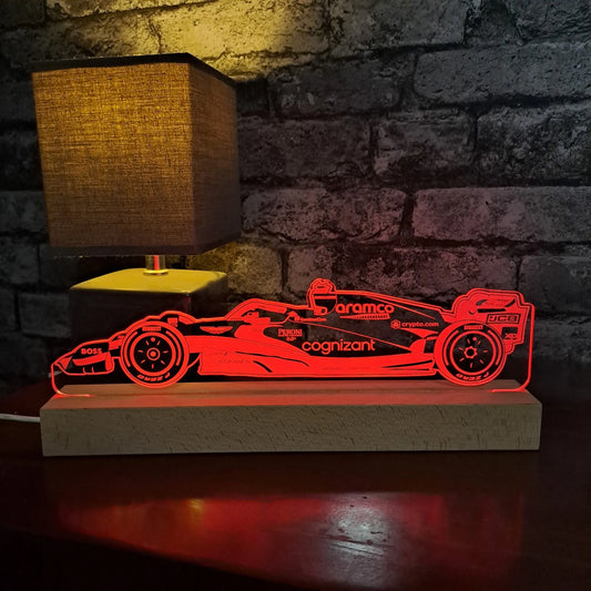 Our motorsport-themed LED night lights feature iconic designs from Formula 1, including Red Bull, Ferrari, and McLaren, as well as legendary cars like the Chevrolet Camaro, Ford Mustang, and Superbikes.