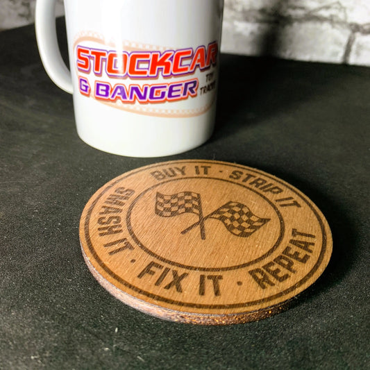 Buy It, Strip It, Smash it, Fix It, Repeat. - Wooden Coaster