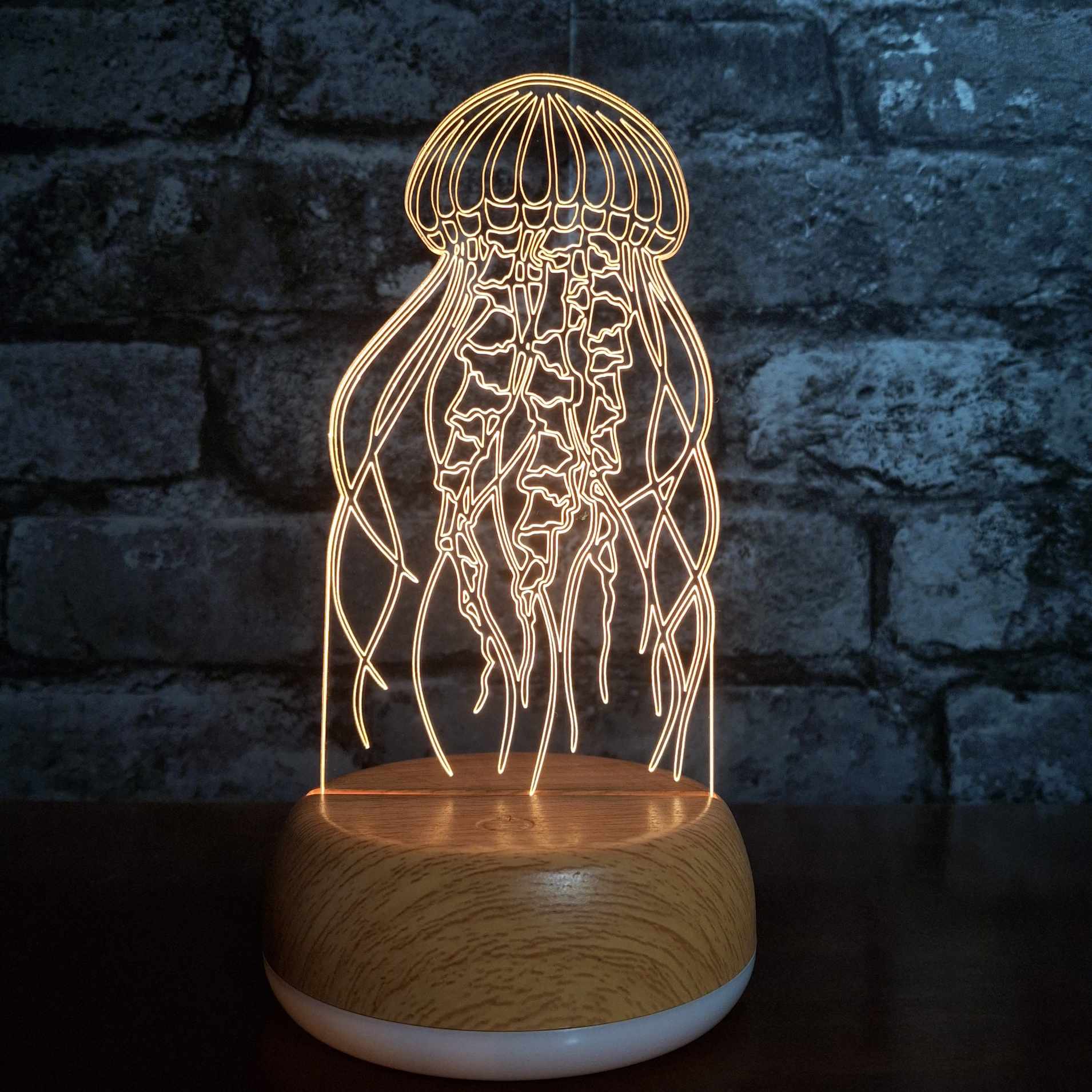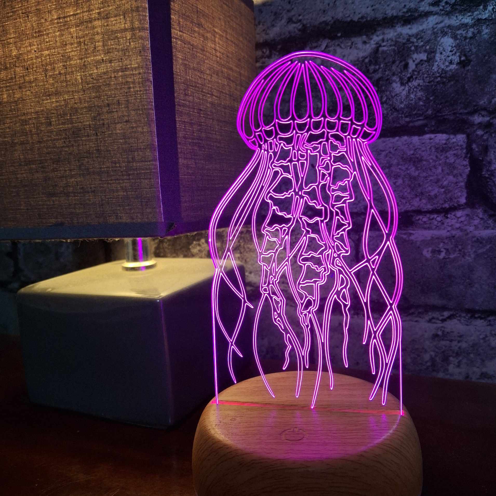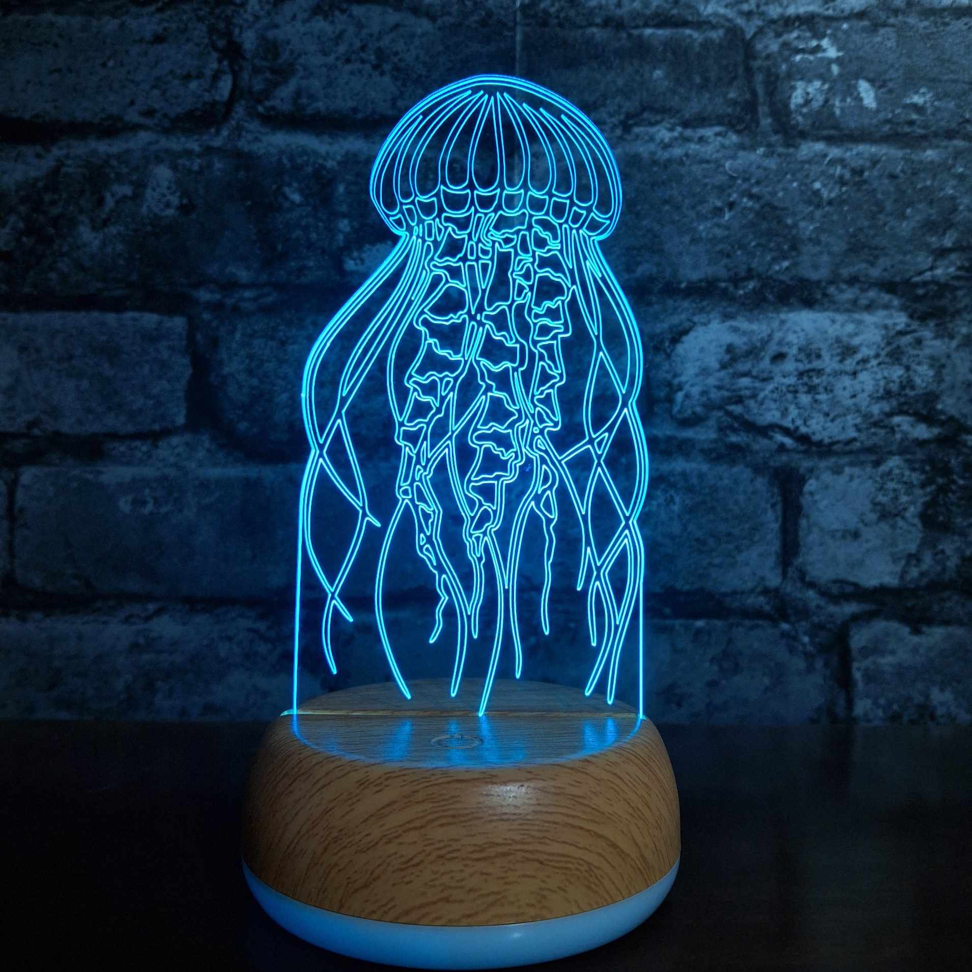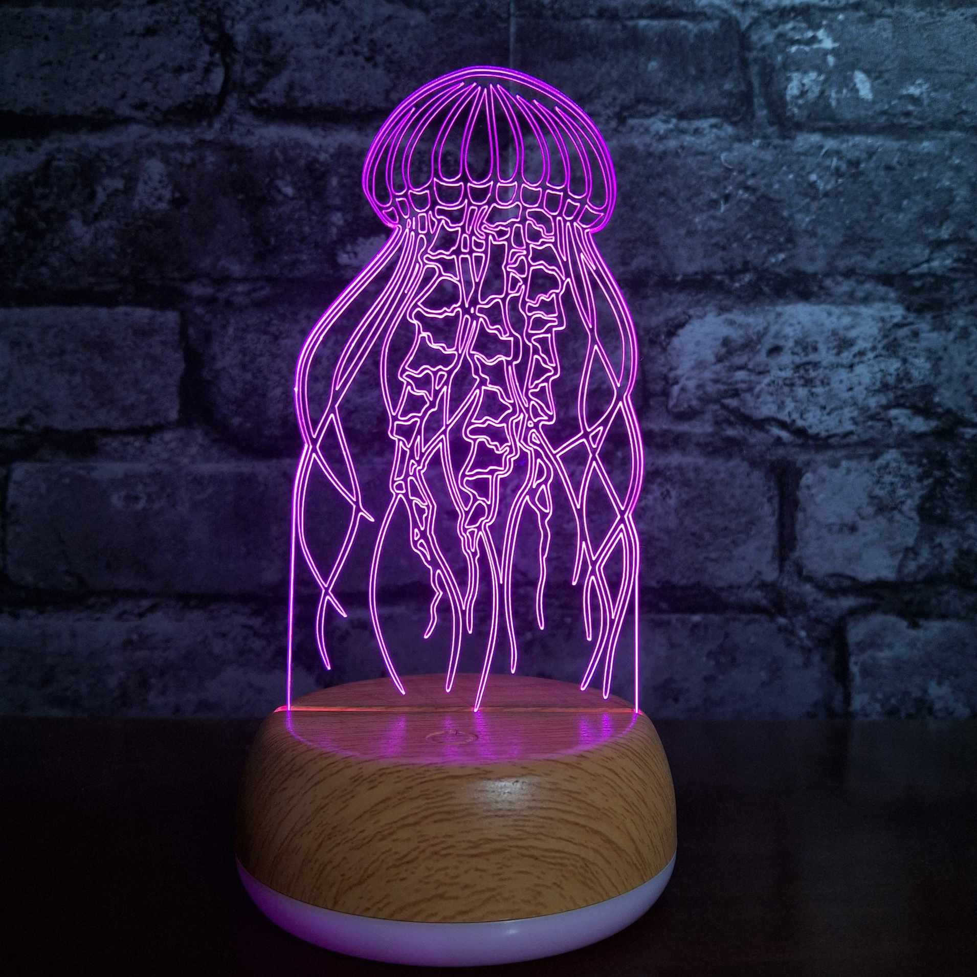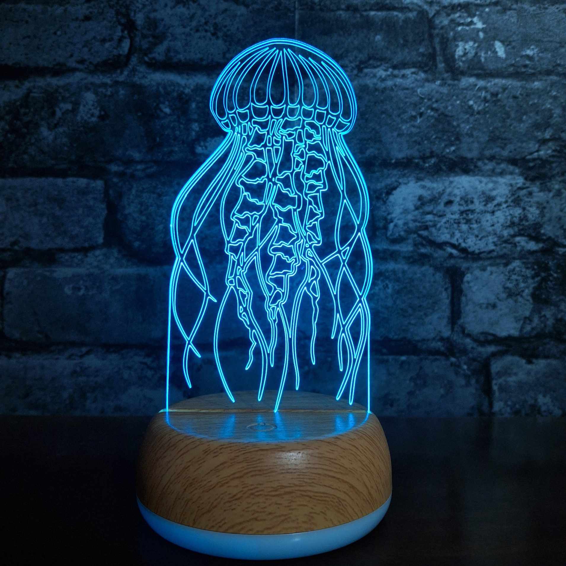 This jellyfish LED night light is a stunning and serene gift for ocean lovers, marine life enthusiasts, or anyone who adores unique under-the-sea decor. Featuring a beautifully detailed laser-engraved jellyfish design, this acrylic lamp emits a soft, calming LED glow—perfect for bedrooms, bathrooms, nurseries, or coastal-themed spaces. Mounted on a sleek wooden or colour-changing LED base, it brings a peaceful, aquatic vibe to any room. Whether you're shopping for a birthday, housewarming, or ocean-inspired accent, this jellyfish night light is a mesmerising way to add a touch of underwater magic to your home.