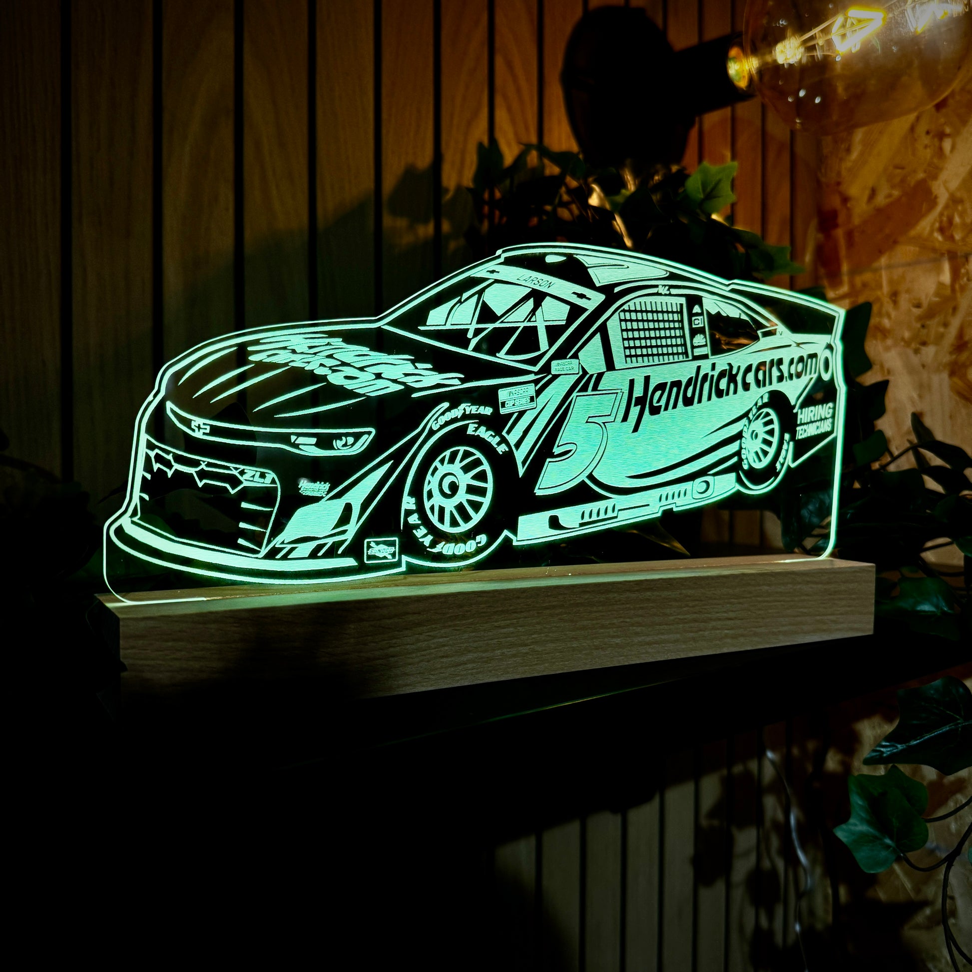 Made by us in the UK! 7 colour LED Illumination Night Light of Kyle Larson, 2022 Nascar cup series champion. The LED lamp show his Hendrick Motorsports Car, #5.