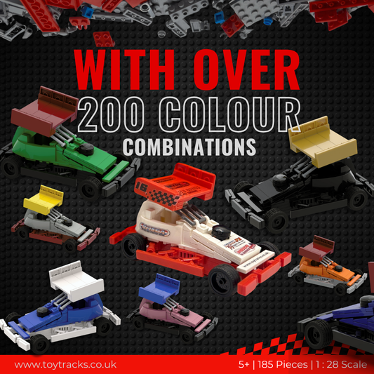 Build, customise and sticker your very own Brisca F1 from bricks! 🧱